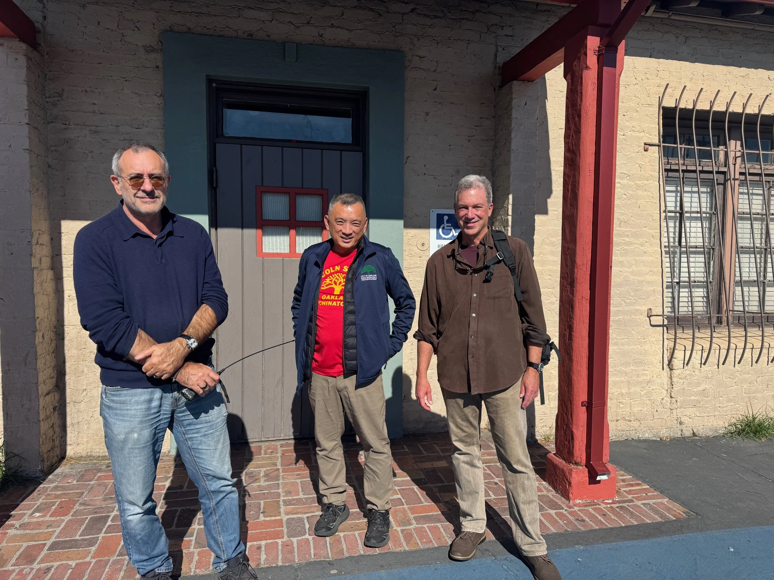 36 years to the day after the 1989 Loma Prieta earthquake, Friends of Lincoln Square Park met with park director Gilbert Gong, and volunteers from ORCA, the Oakland Radio Communications Association to assess Lincoln as a potential site for an emergency communications hub (ECH).